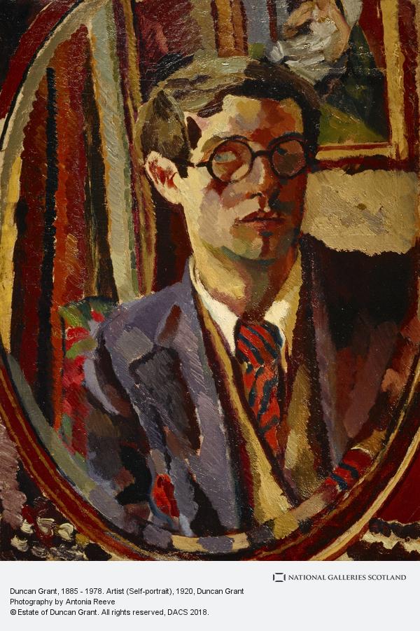 busts or vases. A wild face, under a mat of hair, appeared at knee